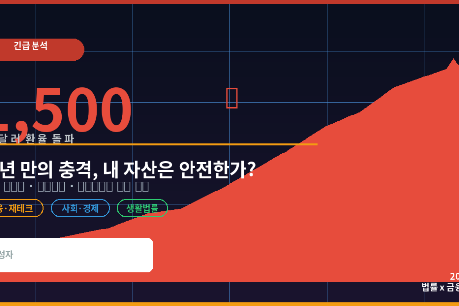 2026년 3월, 원·달러 환율이 17년 만에 1,500원을 돌파했습니다. 현직 변호사이자 자산운용 전문가의 시각으로, 대출·계약서·외환신고·포트폴리오까지 고환율 시대 필수 대응 전략을 총정리합니다.